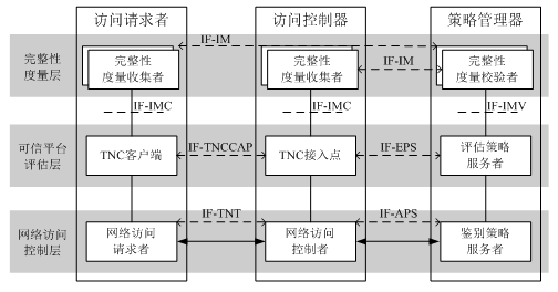 TCA(Trusted Connect Architecture)是西電捷通自主推出的一套三元(訪問請求者、訪問控制器、策略管理者)三層(完整性度量層、可信平臺評估層、網(wǎng)絡(luò)訪問控制層)的可信網(wǎng)絡(luò)連接架構(gòu),通過基于身份鑒別、平臺鑒別來實(shí)現(xiàn)基于端口的訪問控制。