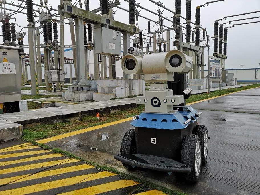 圖:220千伏瑯東變電站的室外輪式巡檢機器人在進行巡視