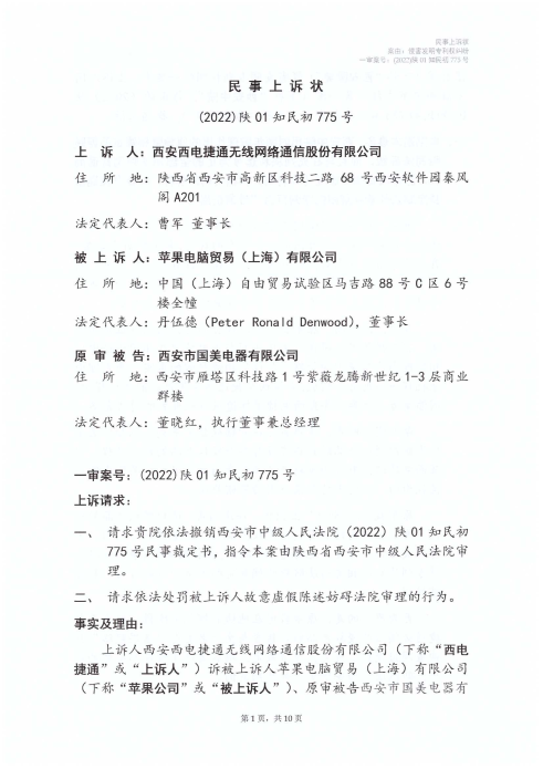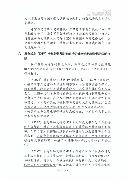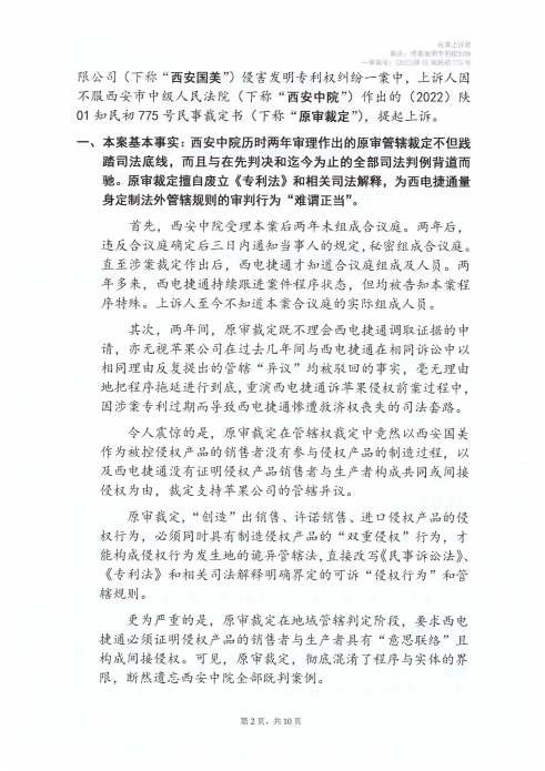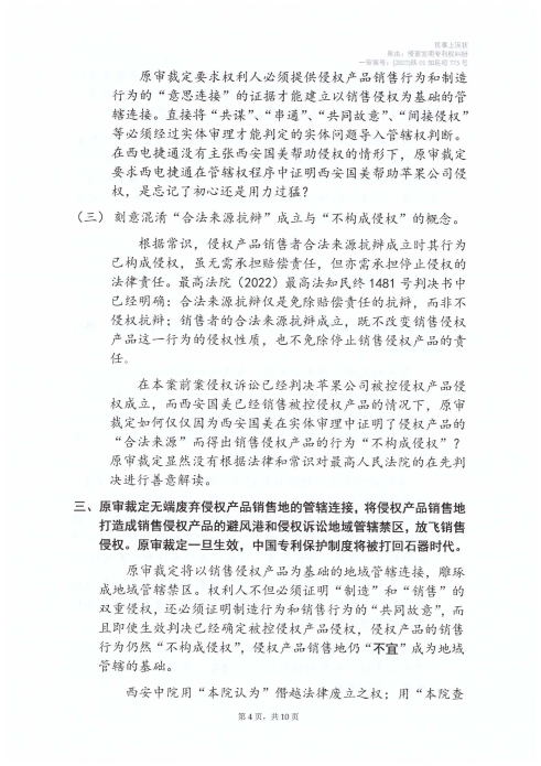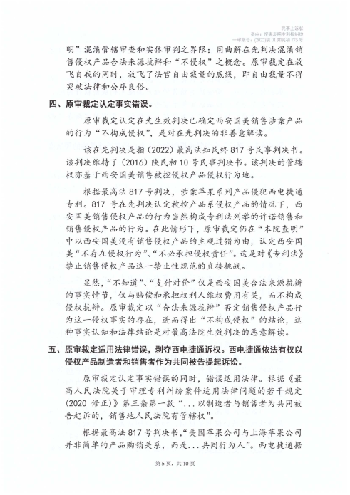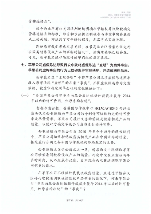 點擊閱讀 西電捷通訴蘋果標準必要專利侵權(quán)案司法文書(2022)陜01知民初775號、(2024)最高法知民轄終141號